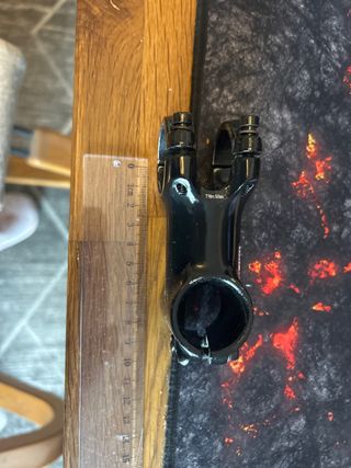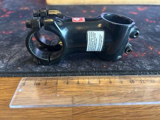 Potencia de bicicleta de carretera en color negro. Fabricada en aluminio. - Longitud aproximada: 4 cm. - Diámetro manillar: 31.8 mm. - Diámetro horquilla: 28.6 mm. - Torque máximo: 7 Nm.