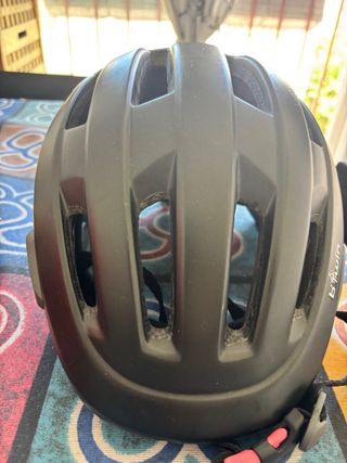 Casco de bicicleta Btwin en buen estado. Ideal para protegerte durante tus paseos en bici. - Talla: 53-58cm - Peso: 290gr - Marca: Btwin - Color: Negro