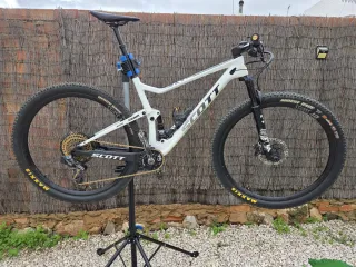 Bicicleta de montaña Scott Spark rc en excelente estado, muy cuidada y con un equipamiento de alta gama. - Cuadro Scott de carbono talla L. -Cambio electrónico -Llantas de carbono DT SWISS. -Doble suspensión - Suspensión delantera FOX 32 - Amortiguador trasero FOX. - Transmisión Shimano SRAM GX. -Tija Telescópica DIVINE SL -Manillar de carbono SYMCROS - Potenciómetro intregrado en la biela - Frenos de disco hidráulicos Shimano. -Cadena Sram - Cubiertas Maxxis con muy poco uso.