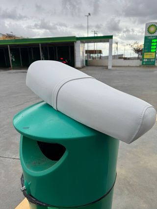 Sillín para moto LML STAR. - Base de plástico negro. - Funda blanca. - Soporte metálico de sujeción.