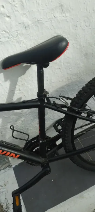 Bicicleta infantil Btwin en color negro con detalles en naranja. Ideal para los más pequeños. - Cuadro de bicicleta. - Ruedas de bicicleta. - Sillín de bicicleta. - Manillar de bicicleta.