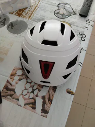 Casco urbano blanco con un diseño moderno y práctico. - Luz trasera integrada para mayor visibilidad. - Ventilación para confort - Acabado liso.