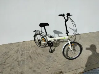 Bicicleta plegable de color blanco, ideal para desplazamientos urbanos o para llevarla contigo a donde vayas. - Cuadro plegable. - Ruedas de 20 pulgadas. - Portabultos trasero.