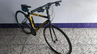 Bicicleta de paseo con detalles en amarillo y blanco. - Rueda con llanta amarilla. - Freno de disco trasero. - Pata de cabra incluida. Lleva tiempo guardada así que hay que limpiarle el polvo