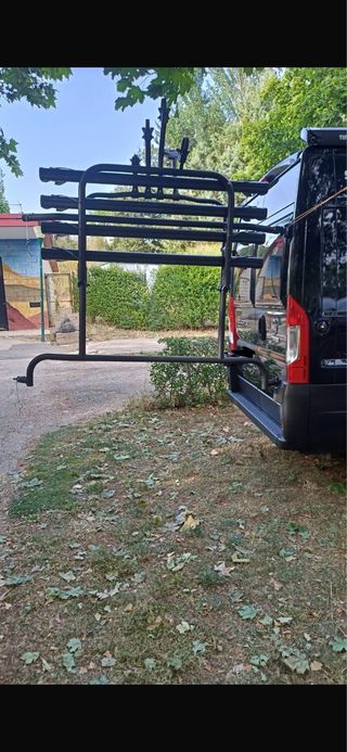 Portabicicletas de la marca Eurocarry diseñado para Fiat Ducato. Compatible para Fiat Ducato / Peugeot Boxer / Citroën Jumper a partir 2007 -Montaje en las bisagras -Permite abrir las puertas traseras -4 carriles para bicicletas de 137 cm de largo -Carga máxima: 60 kg -Peso: 14 kilos -Dimensiones: L 177 x H 116 x L 25/60 cm *PRECIO ALGO NEGOCIABLE