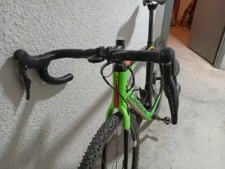 Bicicleta Orbea Terra con transmisión electrónica de 11 velocidades. - Cuadro de carbono. - Frenos de disco. - Ruedas DT Swiss. - Color verde y detalles arcoíris.