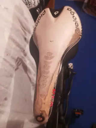 Sillín de bicicleta Selle Italia , esta bastante utilizado pero la espuma esta bien. 130mm de ancho
