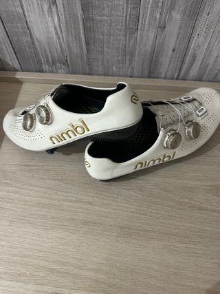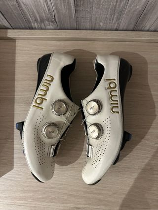 Zapatillas de ciclismo Nimbl en color blanco. - Cierre con dial. - Diseño perforado. - Logo de la marca en dorado.