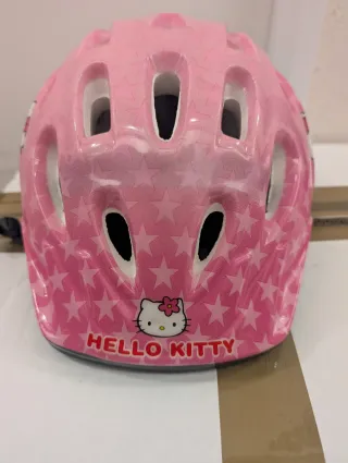 Casco infantil con diseño de Hello Kitty y estrellas. - Color rosa. - Estrellas decorativas. - Imagen de Hello Kitty.