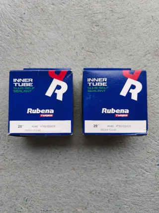 Dos cámaras de aire Rubena para bicicleta de montaña de 29 pulgadas. Son autoreparables con sellador.El motivo de la venta es por confusión de medida. - Tamaño: 29 - Válvula: Presta - Medidas: 47/62-622/635 y 28/29x1.75-2.45