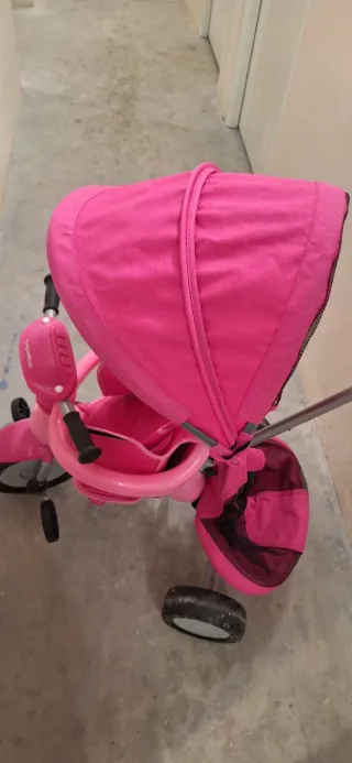 Apenas lo hemos usado un par de voces. Triciclo infantil de color rosa, ideal para los más pequeños. Cuenta con un diseño pensado para la comodidad y seguridad. - Capota protectora. - Barra de empuje para padres. - Cesta de almacenamiento.