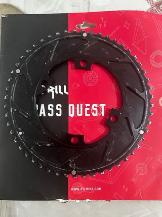 Plato de bicicleta de 52 dientes. - Color negro. - Marca PASS QUEST ,BCD 110 esta montado en una bielas shimano 105 R7000