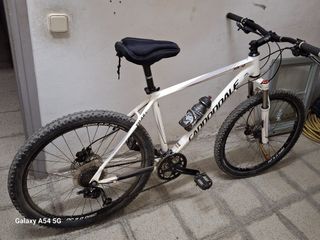 Bicicleta Cannondale modelo Trail en color blanco. Ideal para disfrutar de rutas y caminos. - Cuadro de aluminio. - Suspensión delantera. - Frenos de disco. - Portabidón incluido.