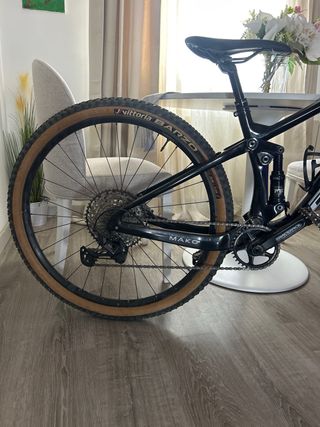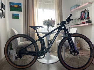Bicicleta de montaña con ruedas de 29 pulgadas. - Cuadro de carbono. - Transmisión Shimano. - Frenos de disco. Horquilla fox 32 Tija telescopica Se entrega con sillin de serie y sin pedales Talla M 12v 10-51 plato 32 Algo negociable