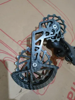Cambio desviador trasero Shimano Ultegra de 11 velocidades modelo R8000 con pata larga Cage de carbono marca NOVA con roldanas de cerámica, usado en buen funcionamiento - Componente de ciclismo de carretera.