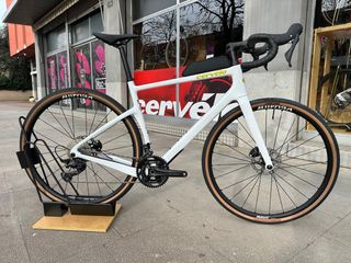 Bicicleta de gravel Cervélo Aspero en talla M. Diseñada para ofrecer un rendimiento excepcional en todo tipo de terrenos. - Cuadro de carbono ligero. - Ruedas de carbono con perfil alto Reserve - Neumáticos anchos para mayor tracción y comodidad. - Transmisión Rival AXS 1x12 - Frenos de disco hidráulicos. PVP: 6100€