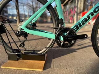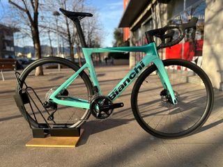 Bicicleta de carretera Bianchi Oltre en color celeste talla 53 - Cuadro y horquilla de carbono. - Frenos de disco. - Transmisión Shimano 2x12 Di2 105 - Ruedas de perfil aluminio PVP: 3990€
