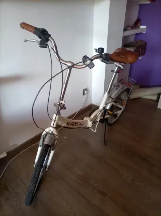 Bicicleta plegable de la marca NORDIC BIKE, muy bien cuidada y en perfecto estado de funcionamiento. Tiene cambios de marcha, sillín muy cómodo, luces delantera y trasera y timbre. Plegable el cuerpo, el manillar y los pedales.