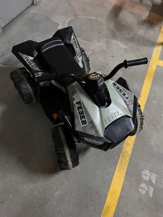 Quad eléctrico con bateria de Feber para niños, con un diseño camuflado. - Ruedas todoterreno. - Asiento cómodo. - con pedal de gas - usado pero en perfecto estado