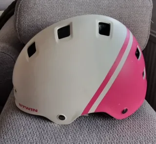 Casco Btwin rosa y blanco para niña