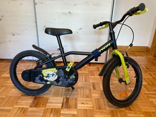 Bicicleta infantil B'TWIN de 14 pulgadas, ideal para los más pequeños. Se encuentra en perfecto estado.Comprada en Decathlon. - Ruedas de 14 pulgadas. - Frenos de mano. - Diseño llamativo en negro y verde lima. - Incluye timbre y reflectantes.