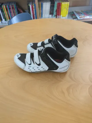 Zapatillas de ciclismo marca Rodda con sistema DSS. - Cierre de velcro. - Diseño en blanco y negro. - Suela con ventilación.