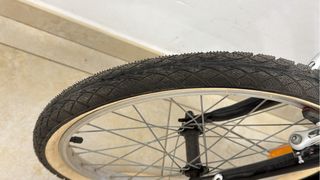 Se vende bicicleta Decathlon por no usarla. Incluye silla para niño. - Color blanco y negro. - Ruedas con aro rojo. - Silla de seguridad para bebé/niño.