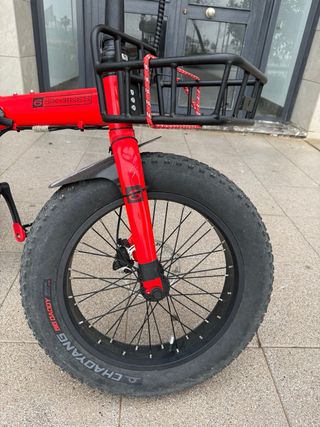 Bicicleta eléctrica plegable de la marca SixBikes. Su diseño compacto la hace ideal para transportarla y guardarla fácilmente. - Color rojo vibrante. - Ruedas anchas para mayor estabilidad. - portaequipajes delantero incorporado. Solo 1100km Pvp 1850€