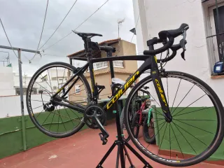 Bicicleta de carretera Orbea orca en color negro con detalles en rojo. - Cuadro de carbono.talla 51 - Componentes Shimano Ultegra. - Ruedas de perfil. Visión 35 cubierta de 28 sin estrenar cambio 105 sin estrenar cassette 11/32 y cadena todo sin estrenar montada en ultegra Interesado escucho oferta O se cambia por remorque Con papeles .