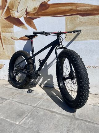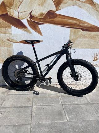 Bicicleta Fat Bike en talla S/M "16” Marca left dd70 Monoplato Cuadro aluminio aligerado Ruedas de 26” Neumaticos schwalbe jumbo jim 4.0 (Llantas tubelizadas) Ideal para todo tipo de terrenos. Como nueva Eje delantero 15x150 mm Eje trasero 12x197 mm - Cuadro robusto. - Ruedas anchas para máxima tracción. - Frenos de disco.