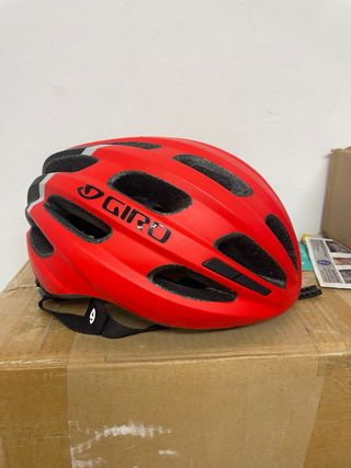 Casco de ciclismo de la marca Giro en color rojo. Diseñado para ofrecer protección y ventilación. - Diseño aerodinámico. - Sistema de ajuste. - Correas de sujeción.