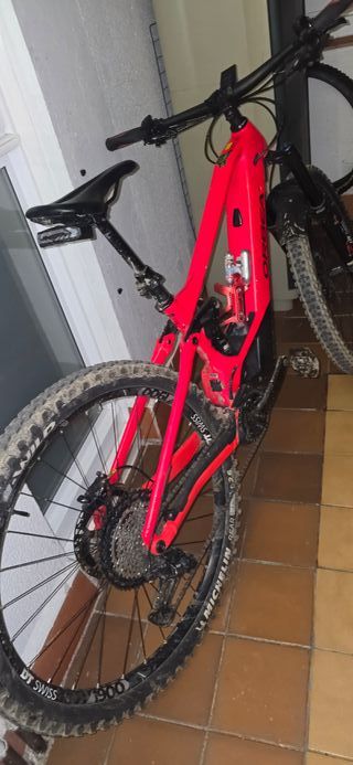 Bicicleta eléctrica Orbea Wild H10 en color rojo. Motor Bosc CX, mejorada toda a XT 8120, talla M, bateria 625w, 14800 klms, año 2021, todas las revisiones y mantenimientos pasados, cargador original mas cargador de carga rapida, para salidas largas.suspension de 160 fox 36,herramientas integradas en el centro del manillar - Ruedas DT Swiss. - Neumáticos Michelin. - Transmisión Shimano.