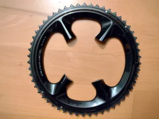 Platos Shimano Dura-Ace FC-R9200 12v (54 dientes grande + 40 dientes pequeño) en estado impecable, con menos de 8000 km según Strava, le quedan otros 8000 km de funcionamiento. Perfecto estéticamente: sin rayones ni dientes afilados (ver fotos).Plato 40T con uso mínimo (pocas subidas en orografía Vallés). Cassette rotado regularmente y cadena KMC dorada con poco desgaste (comprobado con herramienta específica). Incluye 4 tornillos originales Shimano (valor ~20€). Compatible con: Bielas Dura-Ace R9200 / Ultegra R8100 (BCD 110m).