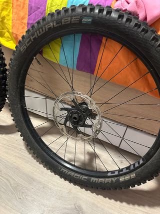 Se venden ruedas de bicicleta de montaña con neumáticos Schwalbe Magic Mary y disco de freno. - Neumáticos Schwalbe Magic Mary. - Incluye disco de freno. Tambien con caset de 12 velocidades