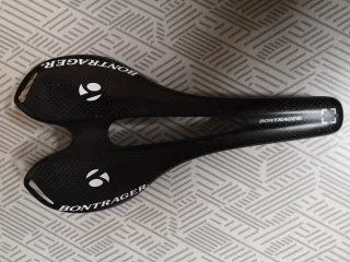 Sillín de bicicleta Bontrager fabricado en carbono. - Peso: 115 g - Diseño ligero y aerodinámico. - Acabado en carbono. - Marca Bontrager.