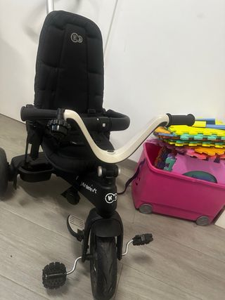 Triciclo de paseo con diseño moderno y cómodo para los más pequeños. - Asiento acolchado. - Barra de empuje ajustable - Reposapiés. -doble freno en ruedas traseras - respaldo ajustable -se puede plegar completo -ruedas traseras desmontables