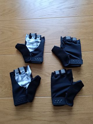 Par de guantes de ciclismo sin dedos, ideales para entrenamientos o paseos. - Diseño con estampado geométrico en blanco y gris. - Palma con acolchado para mayor comodidad. - Cierre de velcro ajustable en la muñeca. - Detalle reflectante en la parte superior.