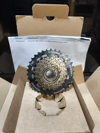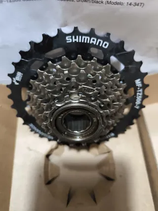 Cassette de 7 velocidades Shimano Megarange. - Modelo: MF-TZ500-7 - Rango de piñones: 14-34T - Color: Marrón/Negro