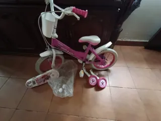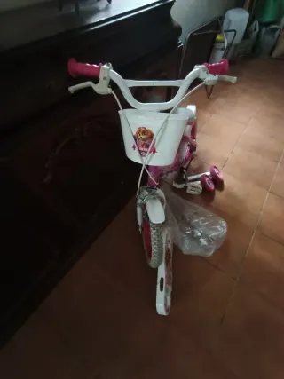 Bicicleta infantil de 12 pulgadas con temática de Paw Patrol. - Funciona todo correctamente para niñ@ de 2 a 5 años. - Color rosa y blanca - Incluye ruedines de aprendizaje. - Cesta delantera blanca.