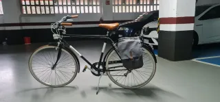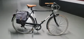 Bicicleta de paseo estilo clásico, de la marca Adriatica Condorino, ideal para moverse por la ciudad con comodidad y elegancia. - Cuadro de color negro. - Sillín de cuero marrón. - Manillar con puños marrones. - Incluye bolsa lateral para equipaje. En perfecto estado. Se puede ver y probar din compromiso
