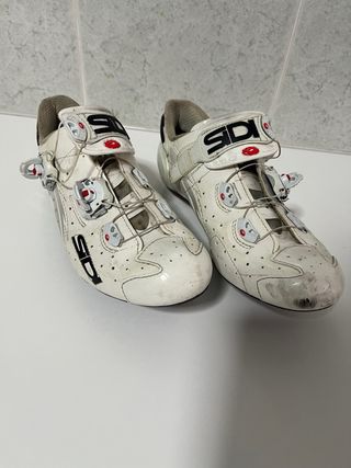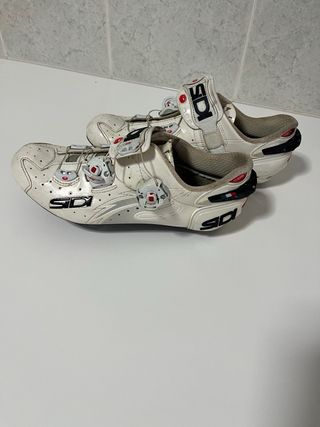 Zapatillas de ciclismo de la marca Sidi en color blanco. Cuentan con un sistema de cierre tipo boa - Logo de la marca en la lengüeta y lateral. - Talla 40 - Se venden sin calas