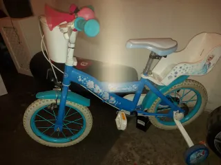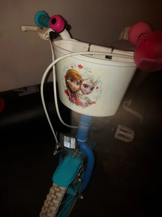 Bicicleta infantil con temática de Frozen, ideal para las primeras aventuras sobre ruedas. Incluye ruedines para mayor estabilidad y una cesta delantera. - Diseño azul con detalles de Frozen. - Cesta blanca delantera. - Ruedines de apoyo. - Asiento y manillar ajustables.