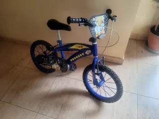 Bicicleta para niñ@s con un diseño moderno y llamativo, ideal para los más pequeños. - Cuadro de color negro con detalles en amarillo. - Ruedas y guardabarros delantero y trasero de color amarillo. - Puños de goma en color amarillo. - Con ruedines Muy poco uso, hay alguna marca de uso en los puños de goma Comprada en Juguettos