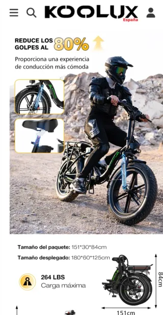 Bicicleta eléctrica Koolux en perfecto estado, casi nueva.Con dos baterias que te daran 150km de autonomia,tiene maneta de aceleracion,no se hacen envios - Modelo Fat Bike con ruedas anchas. - Batería integrada. - Diseño plegable para fácil transporte y almacenamiento. - Color negro con detalles verdes.