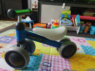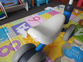 Bici de aprendizaje Sawyer en color azul. - Asiento blanco. - Ruedas grises y negras. - Manillar gris. Como se aprecia en la ultima foto tiene un pequeño desperfecto en el sillin pero esta muy bien