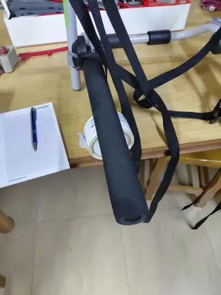 Soporte para bicicletas con correas de sujeción en muy buen estado - Estructura metálica. - Mangos de agarre. - Correas negras ajustables.