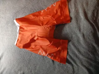 Culote corto de ciclismo en color naranja. Peto alto!! - Talla "L." - Diseño con detalles blancos.