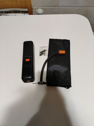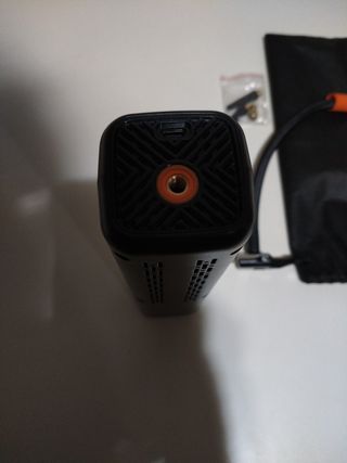 Inflador portátil compacto y recargable. - Diseño inalámbrico para mayor comodidad. - Puerto de carga tipo C.