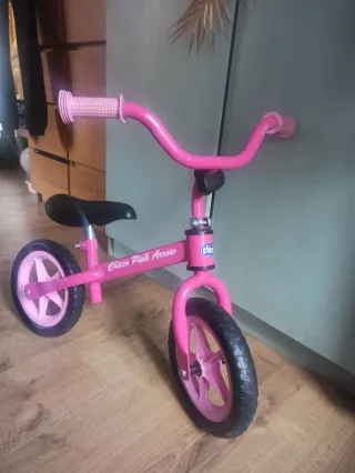 Bicicleta de aprendizaje Chicco Pink Arrow en color rosa. Ideal para que los peques aprendan equilibrio antes de pasar a la bici con pedales. - Ruedas de goma. - Puños de goma para un mejor agarre. - Asiento ajustable en altura.