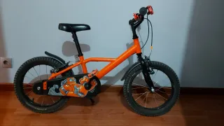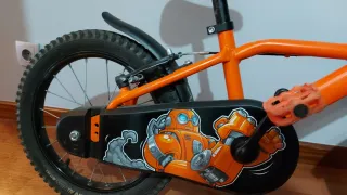 Bicicleta infantil de 16 pulgadas - Color naranja - Ruedas todoterreno. - Cadena protegida con cubre cadena. - Guardabarros delantero y trasero. - Timbre - Pata de cabra